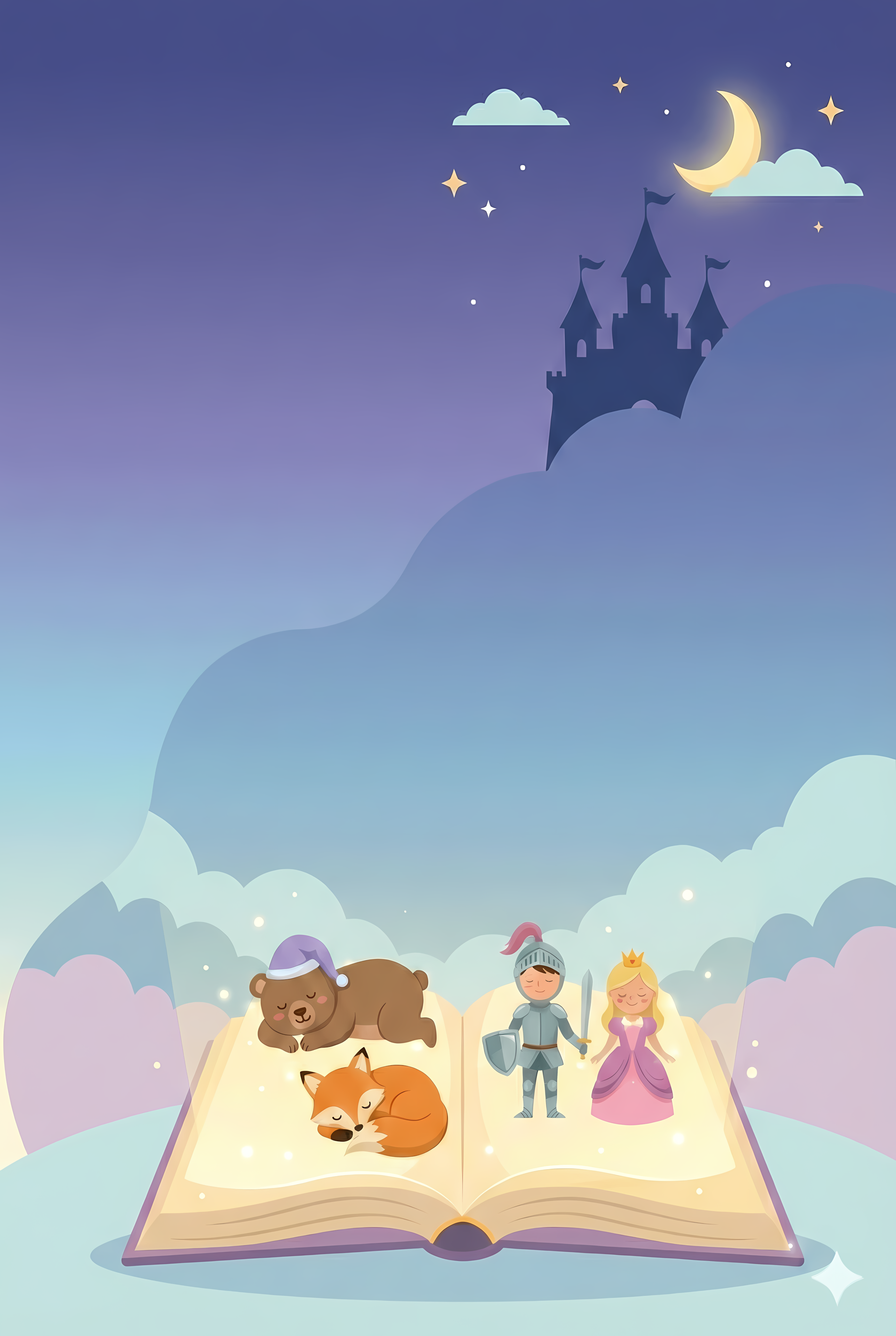 Lad fantasien styre! Vælg 3 ting, og se dem blive til en unik godnathistorie med flotte billeder og stemme, helt automatisk.